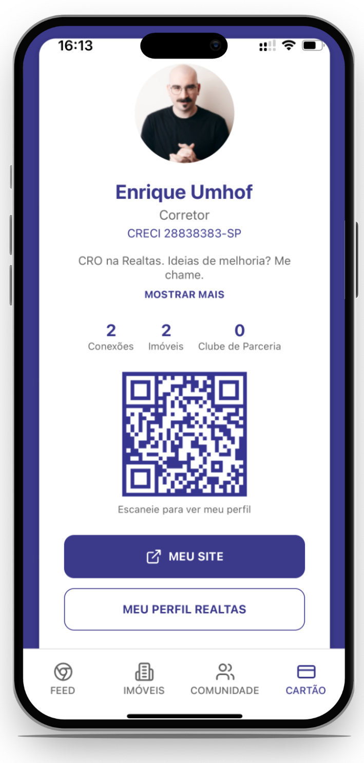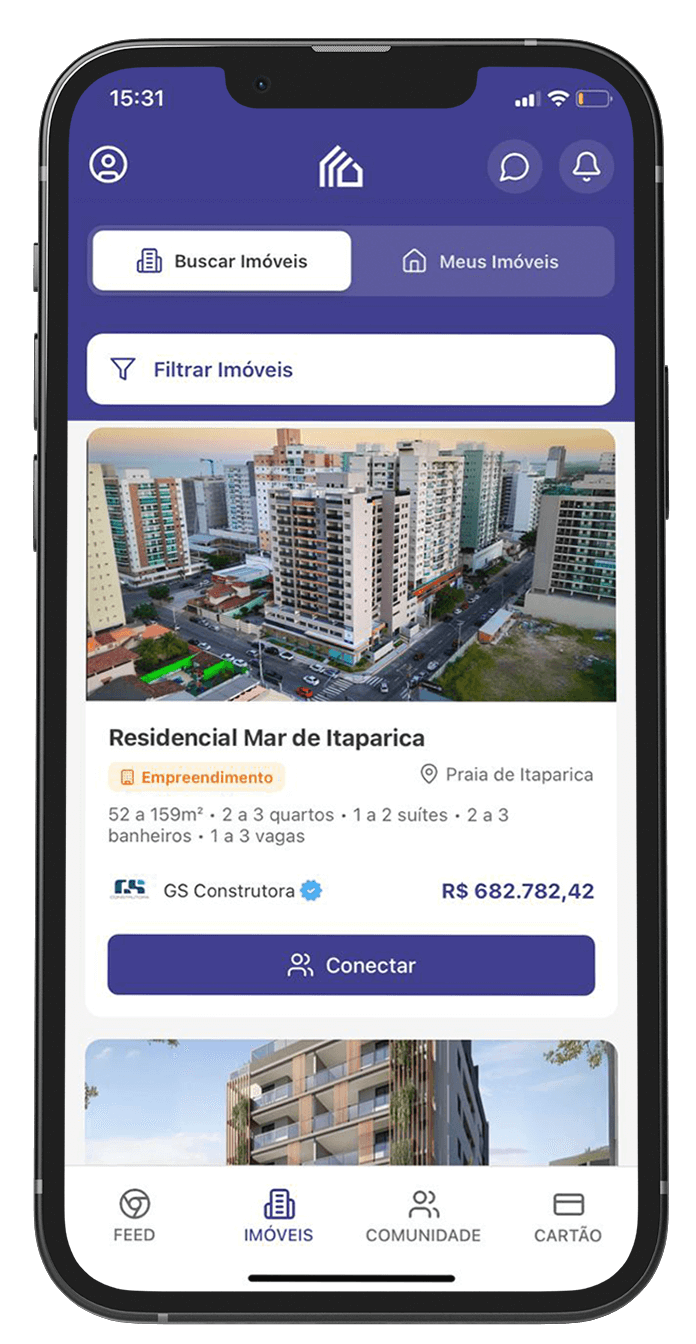 Tenha o mercado no seu bolso. Acesse imóveis, parcerias e leads direto do seu celular.